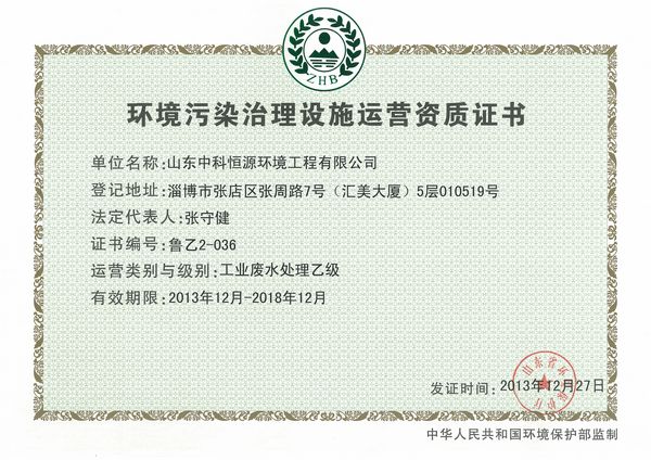 我司再次通過(guò)山東省環(huán)保廳環(huán)境污染治理設施運營(yíng)資質(zhì)乙級審核。