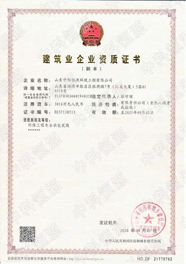 喜訊丨熱烈祝賀我司晉升環(huán)保工程專(zhuān)業(yè)承包貳級資質(zhì)